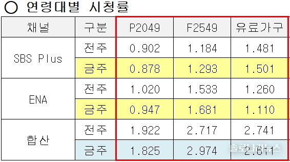 지상파, 종편 포함 동시간대 2049시청률 전체 1위