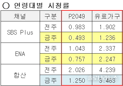 케이블 종합 전국 시청률 3.5%로 1위, 수도권 합산 3.483%