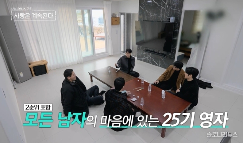 여자 방에서는 20기 영식이 화두에 올랐다. 24기 순자는 “사실 ‘나는 SOLO’ 출연자 중 유일하게 DM을 보냈던 분이 20기 영식 님이다. 잠깐 유튜브를 할 때, 섭외 구실로 연락을 했는데 못 만났다”고 밝혔다. 17기 순자는 “저도 20기 영식 님을 인터뷰 때 호감남으로 말했는데, 27기 영철 님을 먼저 알아보겠다고 했다”고 얘기했다. 이에 25기 순자는 “지금 (20기 영식 님에게 몰려서) 4:1인데, 여자들 다 짜장면 먹는 거 아닌가?”라며 위기감을 드러냈다.