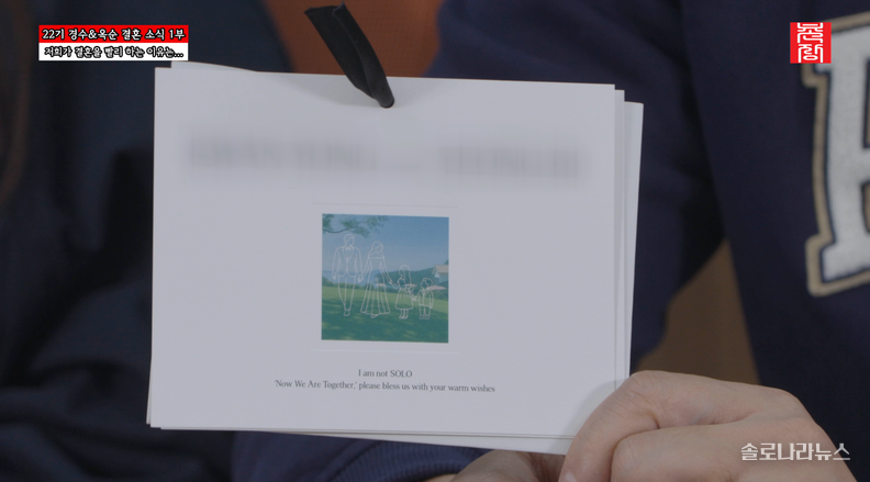 9월 30일 오후 2시 나는 SOLO 22기에서 최종 커플이 되었던 22기 옥순과 22기 경수가 촌장엔터테인먼트를 방문하여 청첩장을 전달했다. 두 사람은 작년 8월 14일부터 시작한 나는 SOLO 돌싱 특집에 함께 출연하여 커플이 되었고, 최근 한 달 전부터는 아이들과 함께 대전 옥순의 집에서 함께 살고 있다. 이들은 11월 9일 서울 용산에서 결혼식을 올릴 예정이다.
