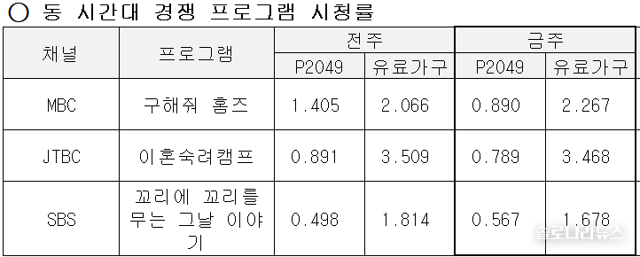 '나솔사계' 주요 타깃인 '여성2549 시청률' 1.618%