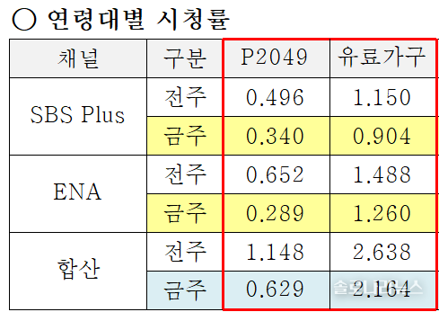 또한, ‘나솔사계’의 '2049 시청률'은 0.629%를 기록하였다.