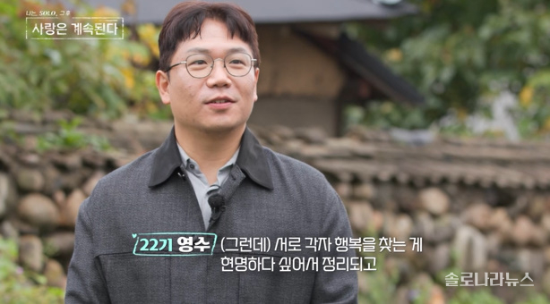 가장 먼저 등장한 22기 영수는 “‘지지고 볶는 여행(이하 지볶행)’ 이후 연애를 했다. 그러나 서로 각자 행복을 찾는 게 현명하다 싶어서 정리했다”고 그간의 연애사를 고백했다. 이어 그는 ‘지볶행’ 후 22기 영숙과도 남녀로서의 관계를 확실히 정리했다고 덧붙였다.