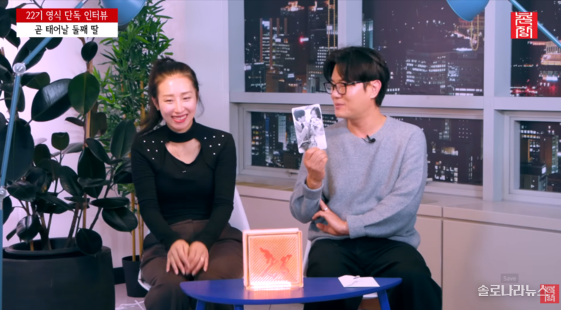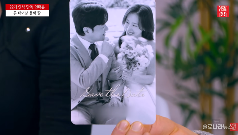 22기 영식은 인터뷰 중 아기의 초음파 영상도 공개했다. 아이는 딸인데, 처음 임신 소식을 듣고 22기 영식은 예비 신부 앞에서 “저 무릎 꿇었어요. 고맙다고. 핸드폰으로 알려줬을 때 무릎 꿇었습니다”라며 당시의 감격을 전했다.