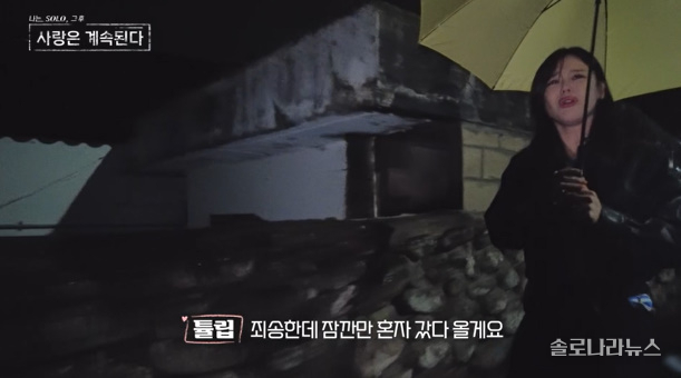 ‘자기소개 타임’이 끝난 뒤에도 튤립은 쉽게 눈물을 멈추지 못한다. 급기야 그는 여자방 화장실로 들어가 한바탕 울면서 감정을 추스른다. 잠시 후 화장실에서 나온 튤립은 ‘룸메이트’ 용담에게 “내가 아이를 놔두고 나온 게 처음”이라고 고백하며 “(누군가를 만날) 준비가 아직 안 된 거 같다”고 털어놓는다. 그러면서 튤립은 “뭔가 내 자리가 아닌데 여기 와있는 것 같다”면서 또 다시 오열한다. 결국 그는 방을 나와 버리고, 제작진에게도 “잠깐만 혼자 갔다 오겠다”며 ‘나솔사계’ 최초로 ‘나홀로 타임’을 요청한다. 과연 ‘눈물샘’이 터져버린 튤립이 서러운 눈물과 자책을 딛고 ‘골싱 민박’에서 인연을 만날 수 있을지 궁금증이 쏠린다.