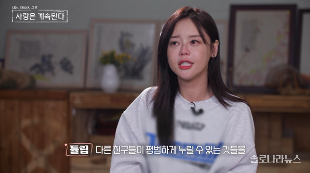 튤립은 ‘자기소개 타임’ 이후에도 좀처럼 마음을 추스르지 못했다. “아이를 놔두고 나온 게 처음이다. 준비가 아직 안 된 거 같아”라고 오열하던 튤립은 결국 “차에 잠깐만 갔다 오겠다”며 마음을 진정시키기 위해 방 밖으로 나왔다. 튤립은 “잠깐만 혼자 갔다 오겠다”고 제작진에게도 혼자만의 시간을 요청한 뒤 혼자서 조용히 마음을 달랬다. 이후 튤립은 “아이도 놔두고 와서 남자를 만나겠다고”라고 자책하면서 “아이가 평범하게 누릴 수 있는 것들을 누리지 못하게 해준 거 같다는 생각이 늘 마음속에 있고, 혼자 키우는 게 힘들었다”고 눈물을 쏟은 이유를 솔직히 밝혔다.