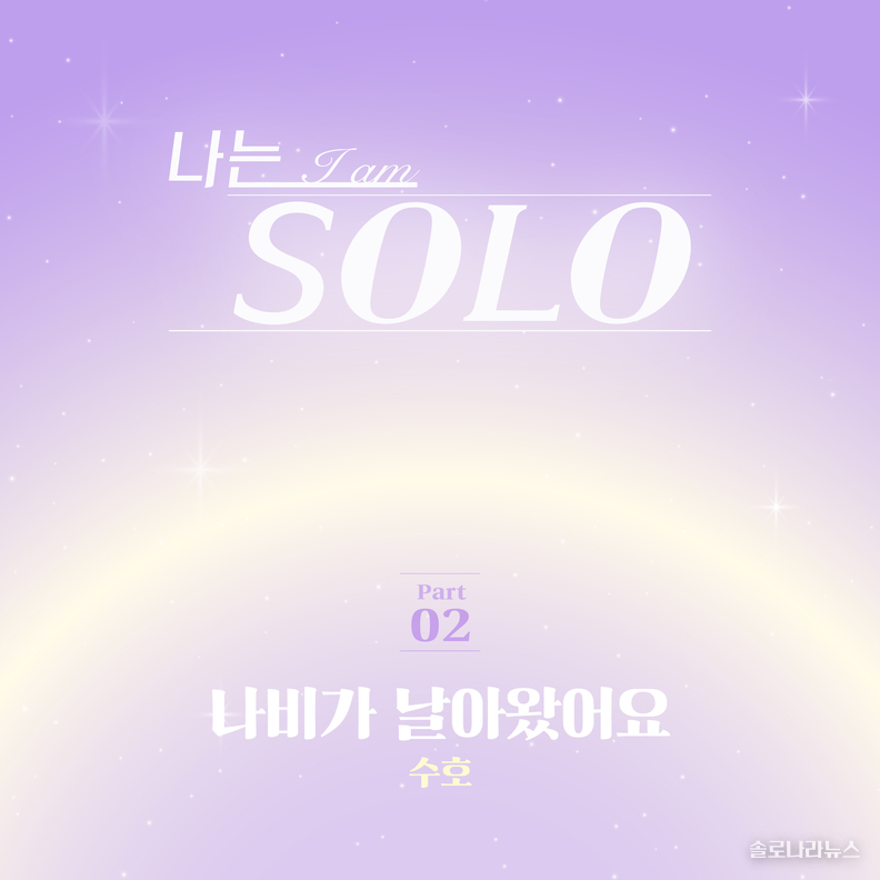 명언이 가사로 돌아왔다. “그대는 나의 나비죠. 내 맘도 쿵 할 거에요“ 라는 가사로 노래가 만들어졌다. 엑소(EXO)의 수호가 참여한 [나는 SOLO] OST Part 2 〈나비가 날아왔어요〉가 2월 5일 목요일 오후 6시 공개됐다. 이번 곡은 지난 1월 29일 공개된 〈YOU & ME〉에 이은 두 번째 OST로, 제작은 칠리뮤직코리아가 맡았다.
