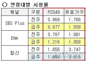 수도권 합산 3.516%, 케이블 종합 전국 시청률 3.4%로 2위