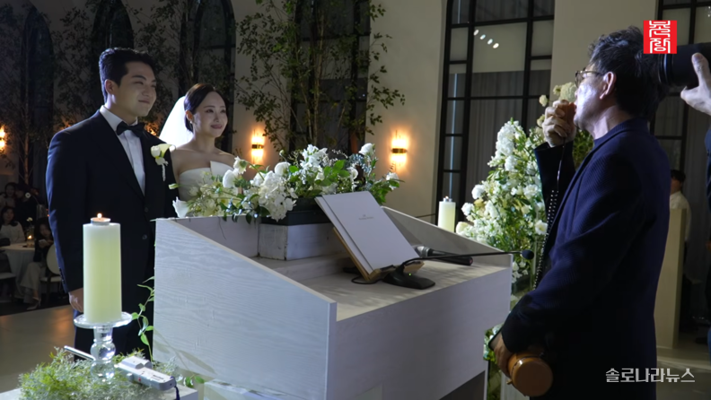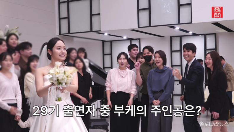 이날 결혼식도 '나솔'의 수장, 남규홍 PD가 축사를 했다. 남 PD는 프로그램의 시그니처인 메가폰을 들고, 두 사람이 처음 만난 29기 촬영 때처럼 다시 한번 등장했다. 그는 두 사람을 연결해 준 의미 있는 메가폰으로 축사를 하면서 두 사람의 순탄치만은 않은 나는 SOLO 촬영 과정을 되짚었다.