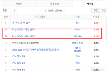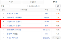 케이블 종합 전국 시청률 3.5%로 1위, 수도권 합산 3.541% '나는 SOLO' 230회 12월 3일 방송 시청률이 발표됐다. 네이버가 발표한 닐슨 코리아의 전국 시청률 조사에 따르면 '나는 SOLO'는 케이블 종합 순위에서 3.5%(합산)를 기록하였다. 채널 별로는 ENA 2.3%(2위), SBS Plus 1.2%(3위)를 각각 기록했다. 수도권 시청률은 각각 1.317%(SBS Plus)와 2.224%(ENA)를 기록하여 합산 시청률은 3.541%였다. 분당 최고 시청률은 4.1%까지 치솟았다. ‘최고의 1분’은 솔로녀들의 ‘자기소개 타임’ 후 현숙이 영호에게 ‘1:1 대화’를 신청하는 장면이 차지했다. 2049 시청률 1.538%로 동시간대 1위 '나는 SOLO'의 '2049 시청률'은 양쪽 방송사 합산 1.385%로 1위를 차지했다. 이는 '나는 SOLO'가 구매력이 가장 높은 연령층이 즐겨보는 프로그램이라는 것을 보여주고 있다. TV-OTT 비드라마 화제성 부문 2위 또한, '나는 SOLO'는 굿데이터코퍼레이션이 12월 2일 발표한 TV-OTT 비드라마 화제성 지수 4위를 기록했다. K-콘텐츠 경쟁력 분석 전문 기관인 굿데이터코퍼레이션이 한 주